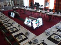 September 2009 in Genf: Für einen internationalen Kongress hat das Team von Hake Event-Technik umfangreiche Technik im Interconti Genf aufgebaut und betreut. Zum Einsatz kamen 3 Dolmetscherkabinen, diverse Video- und Tontechnik und für jeden Teilnehmer eine Diskussionssprechstelle.