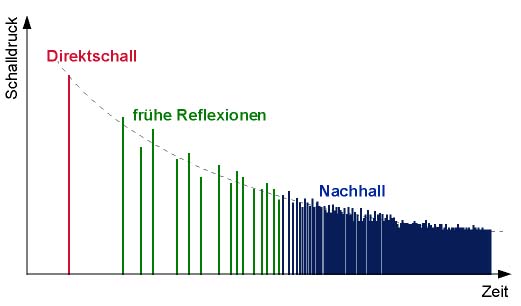 Direktschall, frühe Reflexionen und Nachhall.
